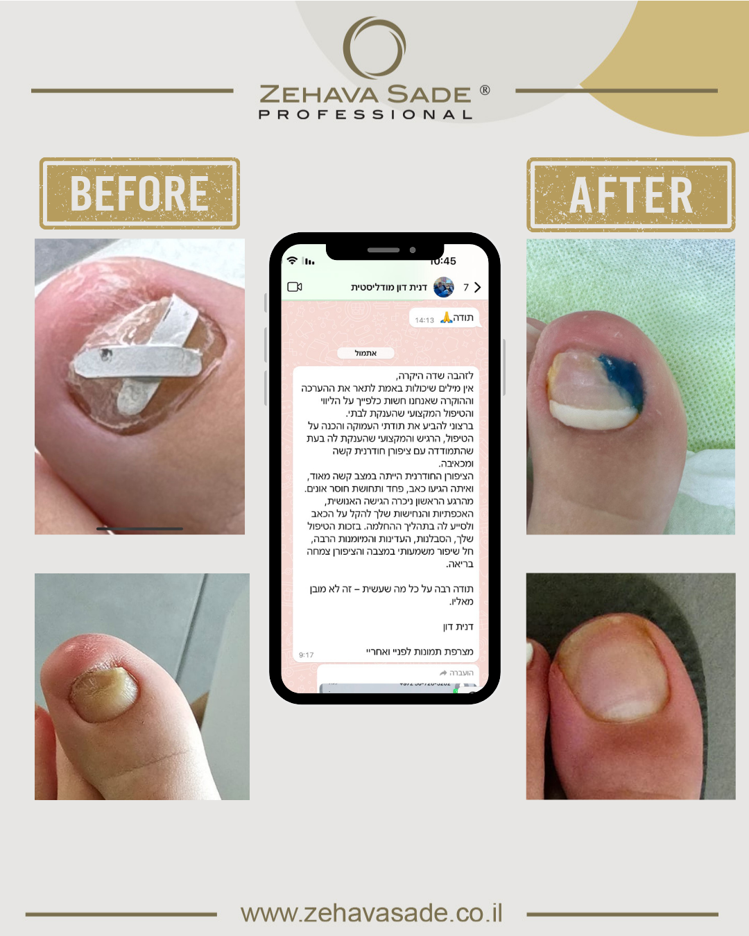 זהו קורס שמעניק לך לא רק ידע, אלא מומחיות אמיתית בטיפול בציפורן חודרנית, עיוותי ציפורניים, פטרת הציפורניים וגרנולציה – מומחיות שמבדלת אותך וממקמת אותך כאשת מקצוע שאליה מגיעים כשכואב באמת.